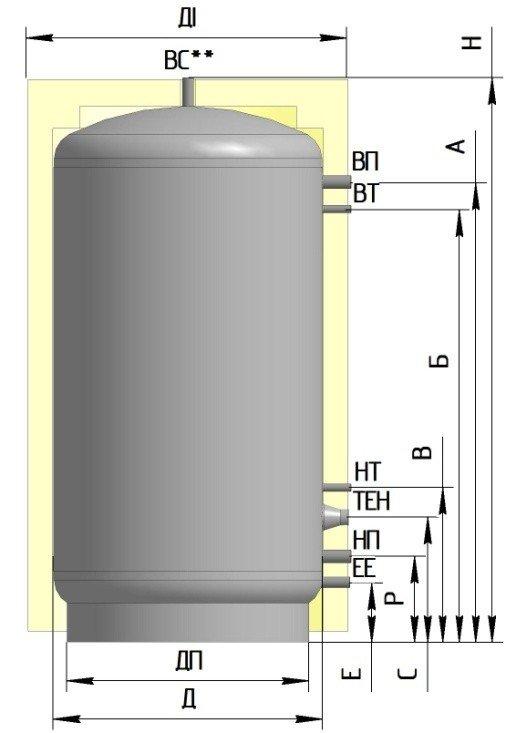 | Тип призначення | Буферна ємність для опалення ЕАМ-00-500 з ізоляцією 80 Kuydych, теплової акумулюючий бак |